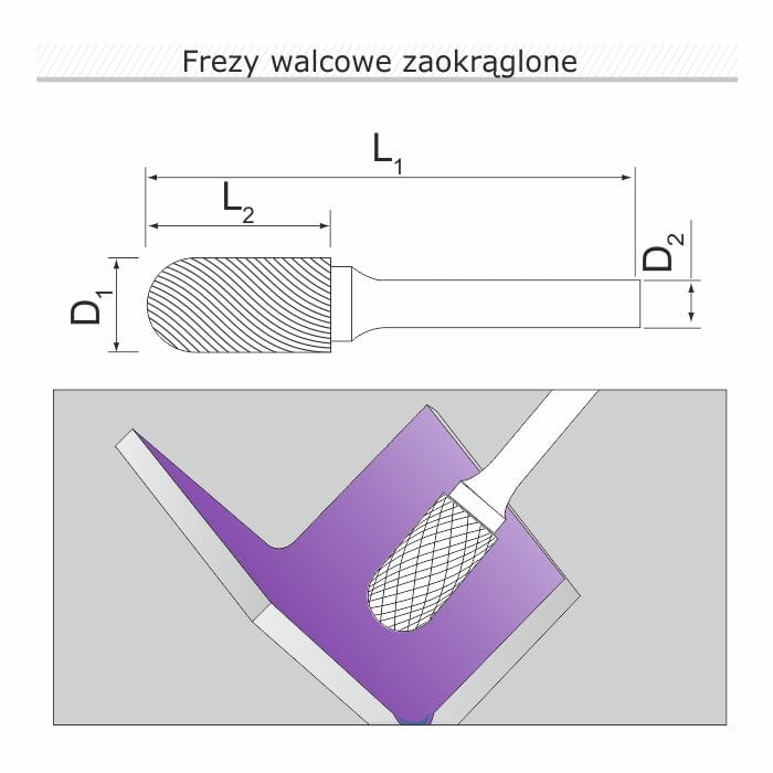 Fresa con pieza de trabajo de carburo de tungsteno para buenas propiedades de corte y larga vida. Cortadores de otras formas, dimensiones y diseños están disponibles.