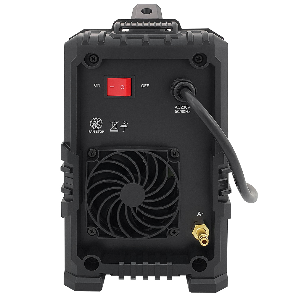 - Funciones: 2T/4T, Fan Stop, descenso de corriente, postflujo TIG, pulso TIG, control analógico, VRD, pantalla LED, soldadura por puntos TIG