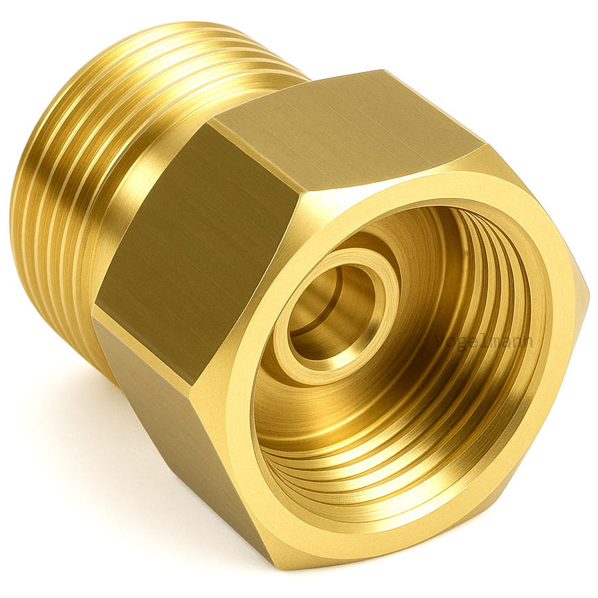 VOGELMANN-merkkinen kaasuadapteri, valmistettu massiivisesta messingistä.